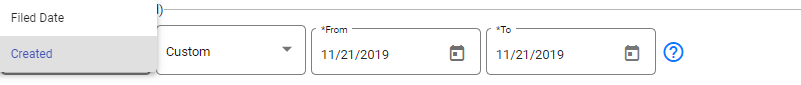 This search will display dockets generated within a 10 day timeframe. Users may select a create or filing date range.
