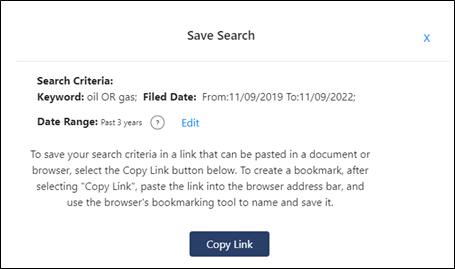 6. Click the Copy Link button to copy the URL to a browser to save as a favorite.